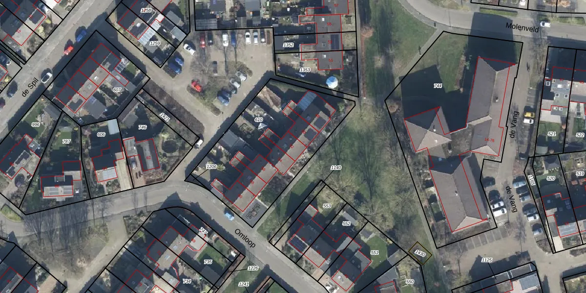 Het perceel waarop Omloop 52 staat heeft een oppervlakte van 1390 m². Dit is een zeer groot perceel. De perceeloppervlakte wordt geregistreerd door het Kadaster. Gedetailleerde informatie over de maten van dit perceel kunt u vinden in het rapport Kadastrale kaart met maatvoering van Omloop 52.