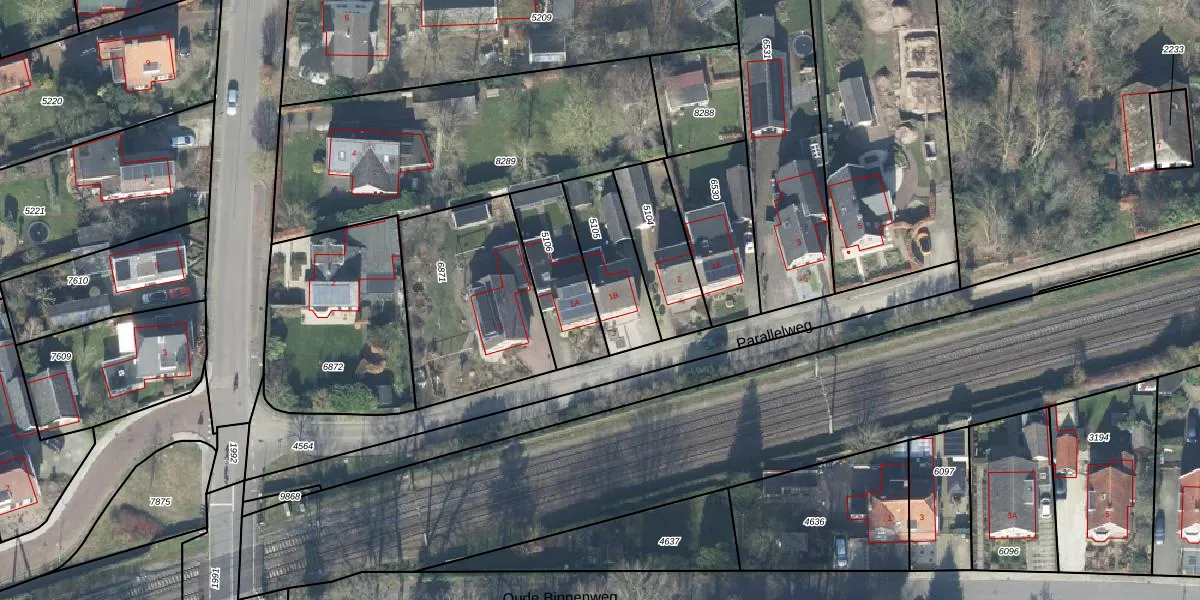 Parallelweg 1-B is gelegen op kadastraal perceel TLO00B5105. Deze kadastrale aanduiding is uniek en wordt gebruikt door het Kadaster om eigendomsrechten en andere zakelijke rechten vast te leggen. Het perceel maakt onderdeel uit van de kadastrale gemeente Twello.