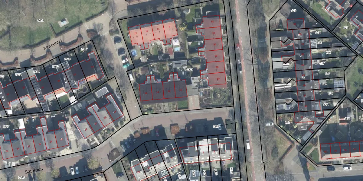 Het perceel waarop Saturnus 10 staat heeft een oppervlakte van 3060 m². Dit is een zeer groot perceel. De perceeloppervlakte wordt geregistreerd door het Kadaster. Gedetailleerde informatie over de maten van dit perceel kunt u vinden in het rapport Kadastrale kaart met maatvoering van Saturnus 10.