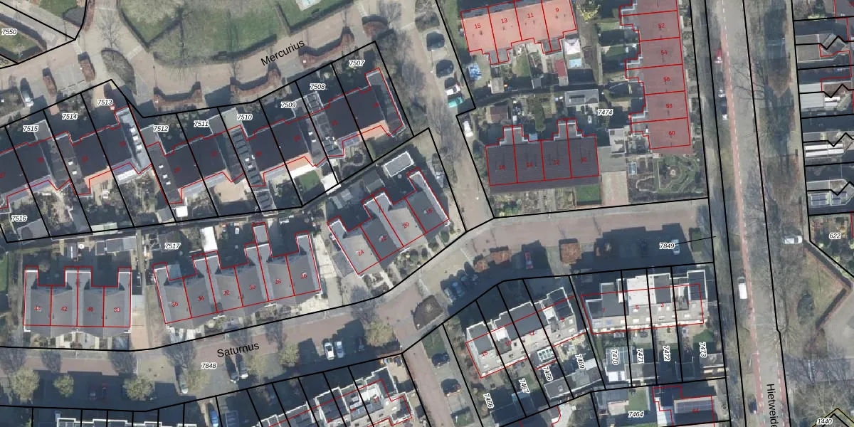 Het perceel waarop Saturnus 18 staat heeft een oppervlakte van 4071 m². Dit is een zeer groot perceel. De perceeloppervlakte wordt geregistreerd door het Kadaster. Gedetailleerde informatie over de maten van dit perceel kunt u vinden in het rapport Kadastrale kaart met maatvoering van Saturnus 18.