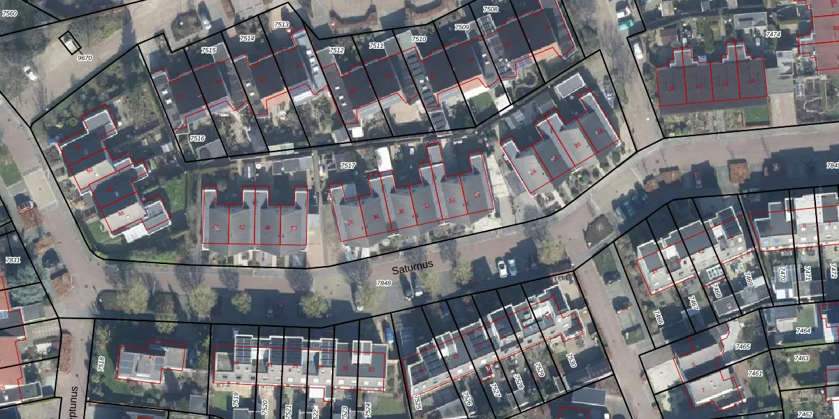 Het perceel waarop Saturnus 30 staat heeft een oppervlakte van 4071 m². Dit is een zeer groot perceel. De perceeloppervlakte wordt geregistreerd door het Kadaster. Gedetailleerde informatie over de maten van dit perceel kunt u vinden in het rapport Kadastrale kaart met maatvoering van Saturnus 30.