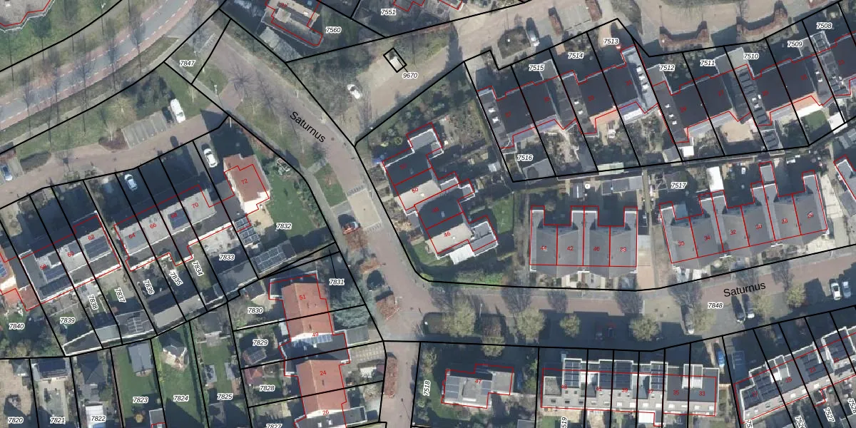 Het perceel waarop Saturnus 48 staat heeft een oppervlakte van 4071 m². Dit is een zeer groot perceel. De perceeloppervlakte wordt geregistreerd door het Kadaster. Gedetailleerde informatie over de maten van dit perceel kunt u vinden in het rapport Kadastrale kaart met maatvoering van Saturnus 48.