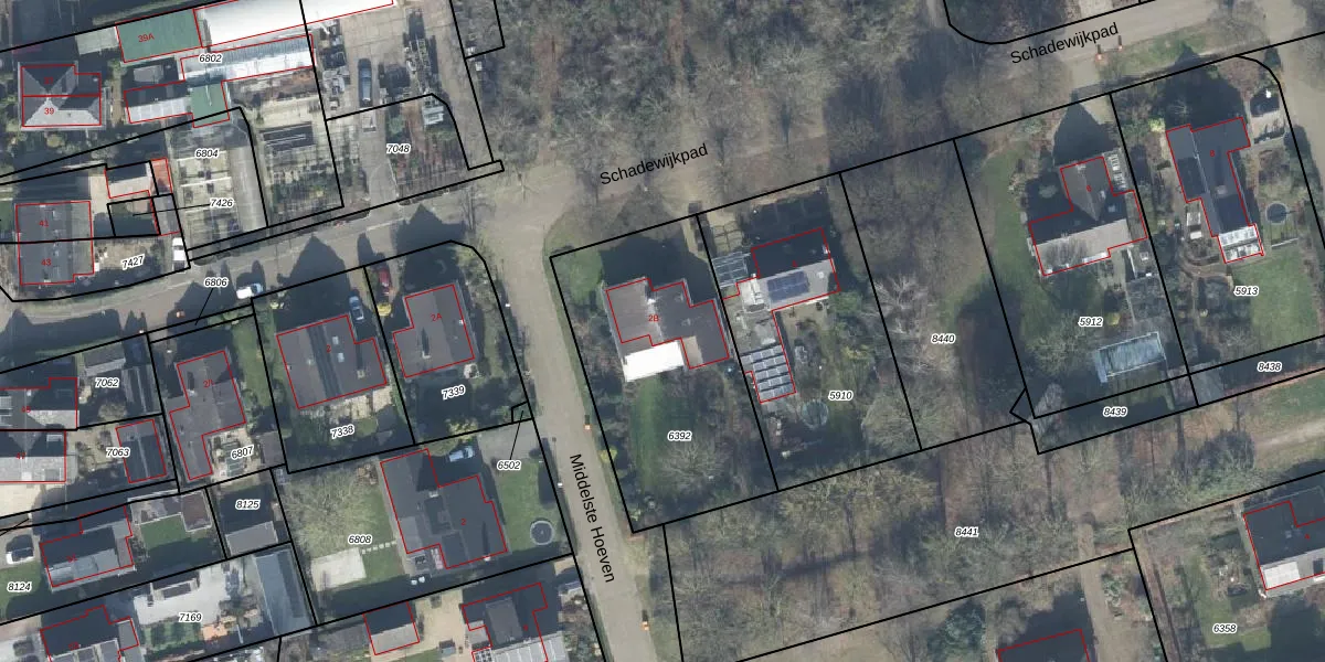 Schadewijkpad 2-B is gelegen op kadastraal perceel TLO00B6392. Deze kadastrale aanduiding is uniek en wordt gebruikt door het Kadaster om eigendomsrechten en andere zakelijke rechten vast te leggen. Het perceel maakt onderdeel uit van de kadastrale gemeente Twello.