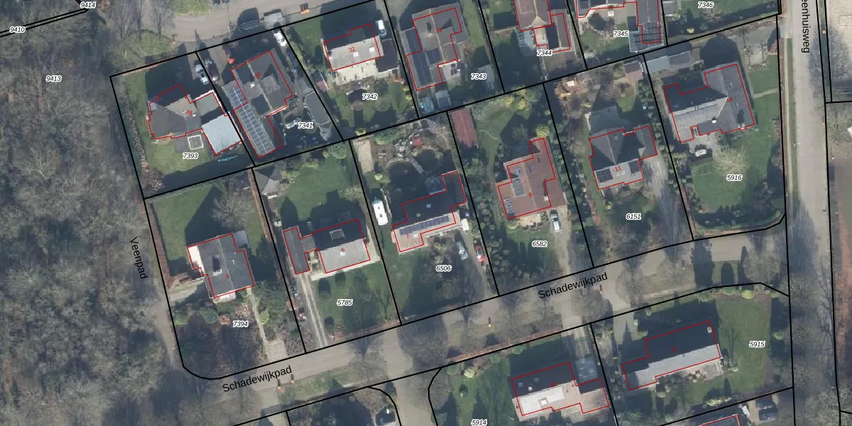 Schadewijkpad 7 is gelegen op kadastraal perceel TLO00B6506. Deze kadastrale aanduiding is uniek en wordt gebruikt door het Kadaster om eigendomsrechten en andere zakelijke rechten vast te leggen. Het perceel maakt onderdeel uit van de kadastrale gemeente Twello.