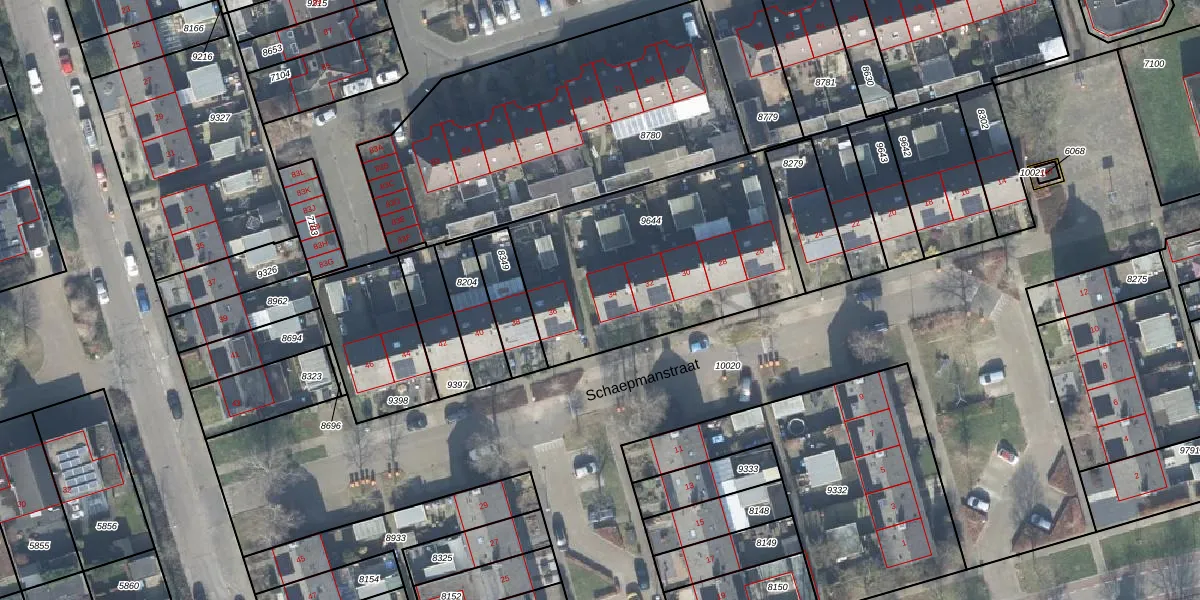 Het perceel waarop Schaepmanstraat 34 staat heeft een oppervlakte van 1280 m². Dit is een zeer groot perceel. De perceeloppervlakte wordt geregistreerd door het Kadaster. Gedetailleerde informatie over de maten van dit perceel kunt u vinden in het rapport Kadastrale kaart met maatvoering van Schaepmanstraat 34.