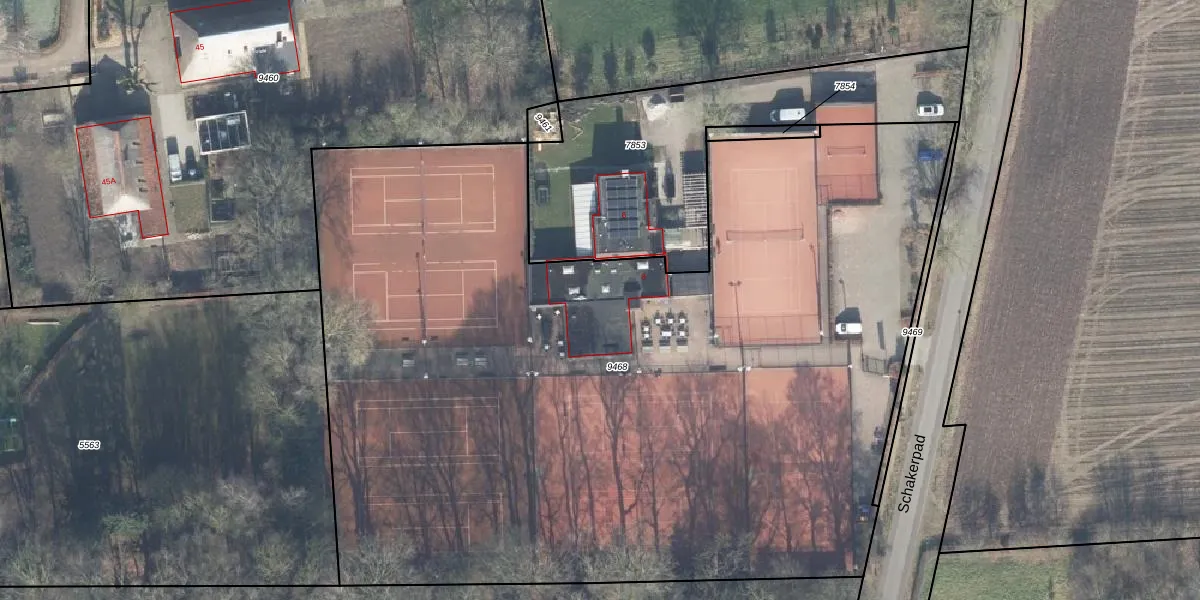 Het perceel waarop Schakerpad 8 staat heeft een oppervlakte van 6485 m². Dit is een zeer groot perceel. De perceeloppervlakte wordt geregistreerd door het Kadaster. Gedetailleerde informatie over de maten van dit perceel kunt u vinden in het rapport Kadastrale kaart met maatvoering van Schakerpad 8.