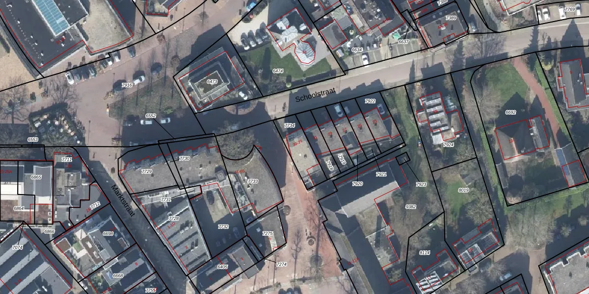 Schoolstraat 33 is gelegen op kadastraal perceel TLO00B7734. Deze kadastrale aanduiding is uniek en wordt gebruikt door het Kadaster om eigendomsrechten en andere zakelijke rechten vast te leggen. Het perceel maakt onderdeel uit van de kadastrale gemeente Twello.