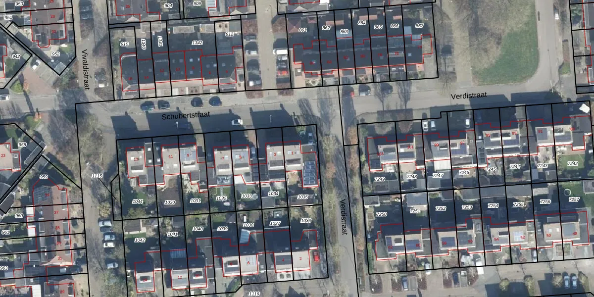 Het perceel waarop Schubertstraat 1 staat heeft een oppervlakte van 315 m². Dit is een groot perceel. De perceeloppervlakte wordt geregistreerd door het Kadaster. Gedetailleerde informatie over de maten van dit perceel kunt u vinden in het rapport Kadastrale kaart met maatvoering van Schubertstraat 1.