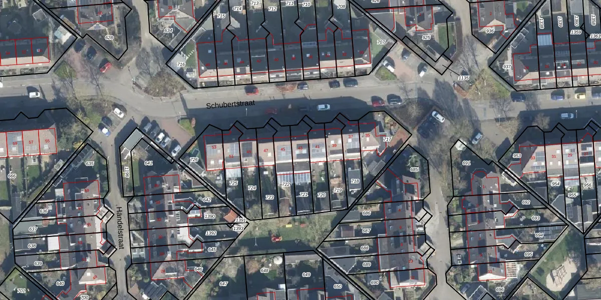 Het perceel waarop Schubertstraat 43 staat heeft een oppervlakte van 176 m². Dit is een middelgroot perceel. De perceeloppervlakte wordt geregistreerd door het Kadaster. Gedetailleerde informatie over de maten van dit perceel kunt u vinden in het rapport Kadastrale kaart met maatvoering van Schubertstraat 43.