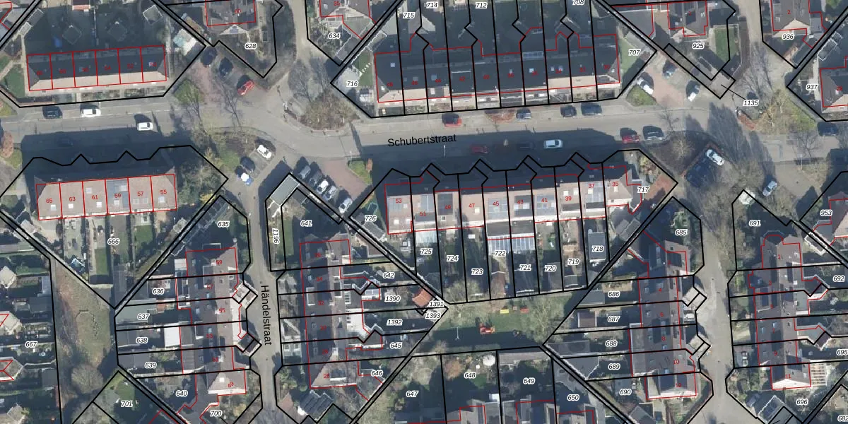 Het perceel waarop Schubertstraat 51 staat heeft een oppervlakte van 154 m². Dit is een middelgroot perceel. De perceeloppervlakte wordt geregistreerd door het Kadaster. Gedetailleerde informatie over de maten van dit perceel kunt u vinden in het rapport Kadastrale kaart met maatvoering van Schubertstraat 51.