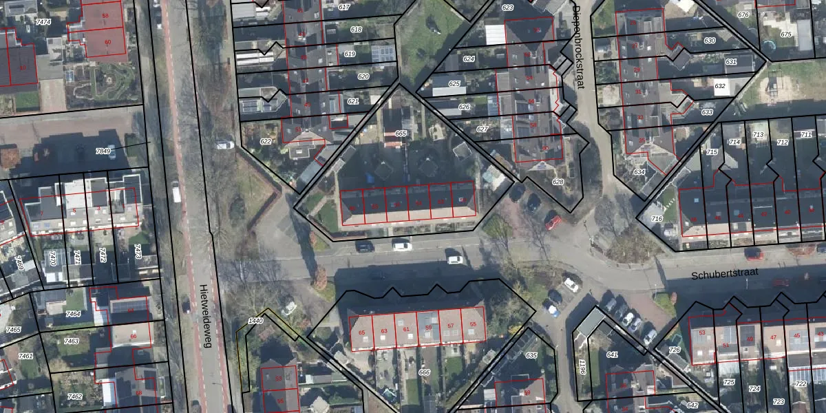Schubertstraat 54 is gelegen op kadastraal perceel TLO00E665. Deze kadastrale aanduiding is uniek en wordt gebruikt door het Kadaster om eigendomsrechten en andere zakelijke rechten vast te leggen. Het perceel maakt onderdeel uit van de kadastrale gemeente Twello.