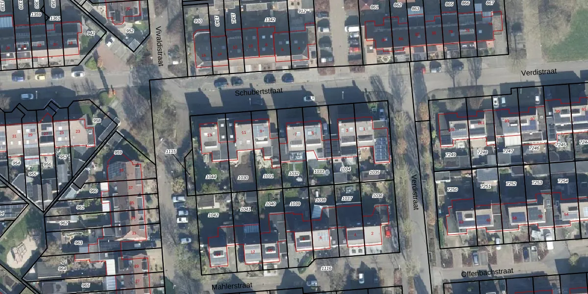 Het perceel waarop Schubertstraat 7 staat heeft een oppervlakte van 236 m². Dit is een middelgroot perceel. De perceeloppervlakte wordt geregistreerd door het Kadaster. Gedetailleerde informatie over de maten van dit perceel kunt u vinden in het rapport Kadastrale kaart met maatvoering van Schubertstraat 7.