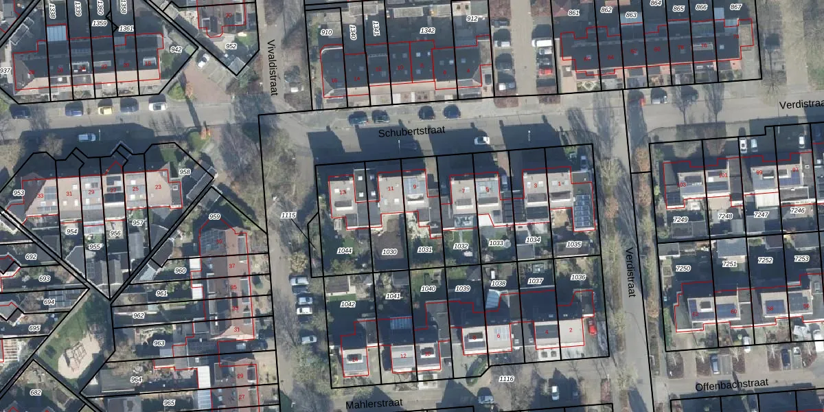 Gebruik de zoekbalk of klik op een perceel voor informatie over de adressen binnen dit perceel.