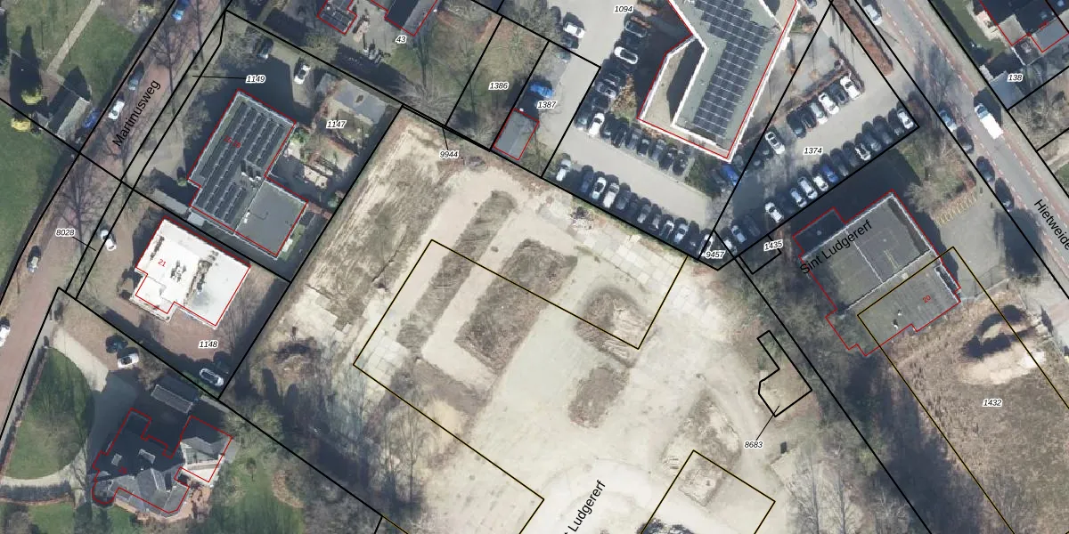 Het perceel waarop Sint Ludgererf 10 staat heeft een oppervlakte van 3708 m². Dit is een zeer groot perceel. De perceeloppervlakte wordt geregistreerd door het Kadaster. Gedetailleerde informatie over de maten van dit perceel kunt u vinden in het rapport Kadastrale kaart met maatvoering van Sint Ludgererf 10.