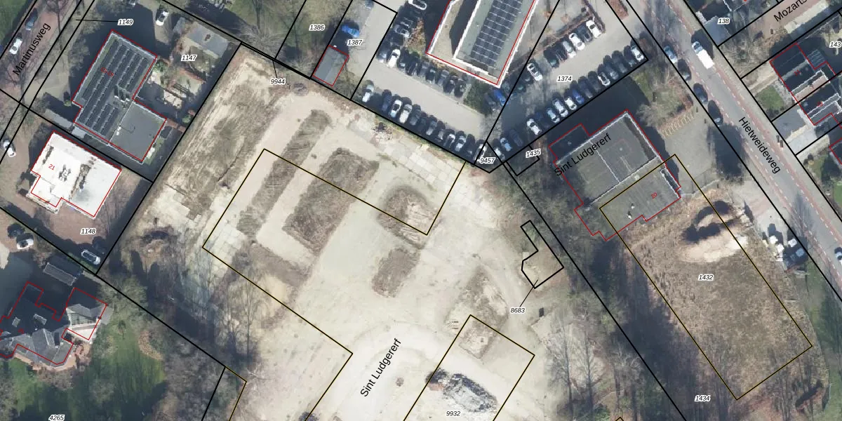 Het perceel waarop Sint Ludgererf 4 staat heeft een oppervlakte van 3708 m². Dit is een zeer groot perceel. De perceeloppervlakte wordt geregistreerd door het Kadaster. Gedetailleerde informatie over de maten van dit perceel kunt u vinden in het rapport Kadastrale kaart met maatvoering van Sint Ludgererf 4.