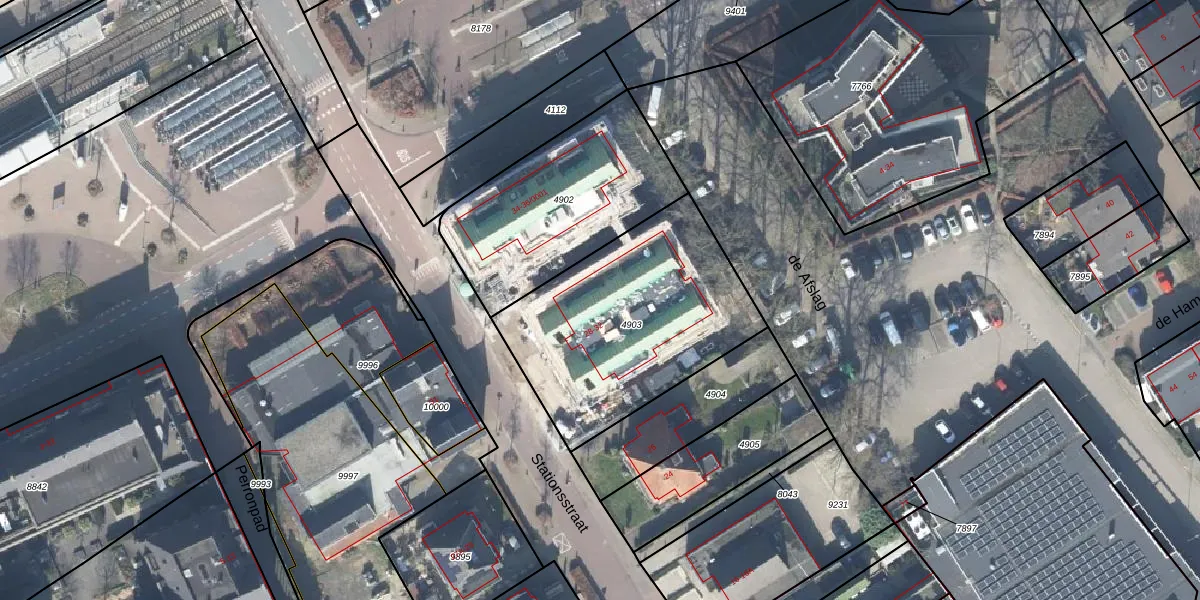 Het perceel waarop Stationsstraat 30-0002 staat heeft een oppervlakte van 1005 m². Dit is een zeer groot perceel. De perceeloppervlakte wordt geregistreerd door het Kadaster. Gedetailleerde informatie over de maten van dit perceel kunt u vinden in het rapport Kadastrale kaart met maatvoering van Stationsstraat 30-0002.
