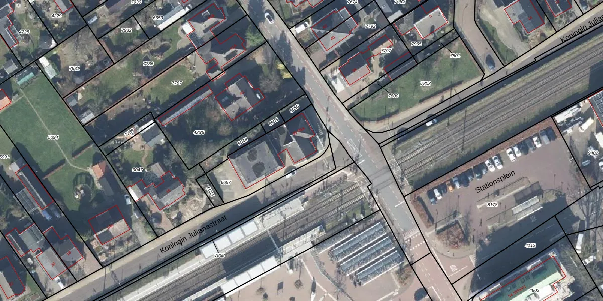 Het perceel waarop Stationsstraat 39 staat heeft een oppervlakte van 618 m². Dit is een groot perceel. De perceeloppervlakte wordt geregistreerd door het Kadaster. Gedetailleerde informatie over de maten van dit perceel kunt u vinden in het rapport Kadastrale kaart met maatvoering van Stationsstraat 39.