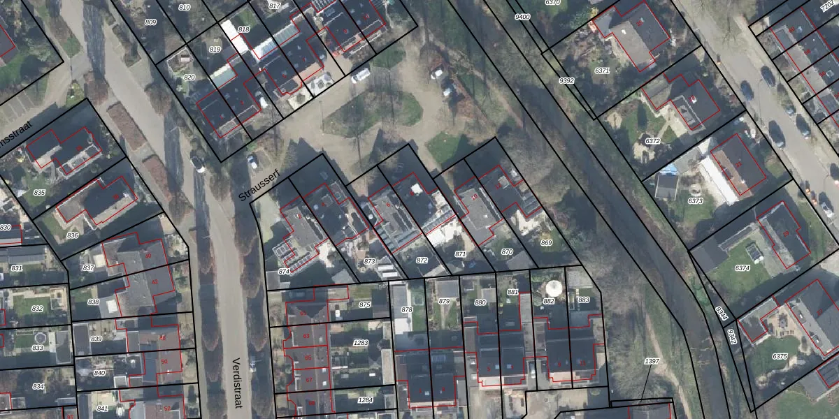 Het perceel waarop Strausserf 8 staat heeft een oppervlakte van 309 m². Dit is een groot perceel. De perceeloppervlakte wordt geregistreerd door het Kadaster. Gedetailleerde informatie over de maten van dit perceel kunt u vinden in het rapport Kadastrale kaart met maatvoering van Strausserf 8.