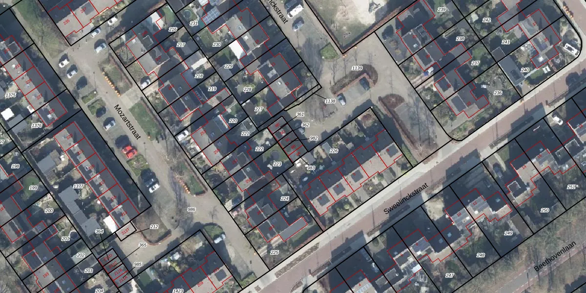 Het perceel waarop Sweelinckstraat 9-B staat heeft een oppervlakte van 39 m². Dit is een klein perceel. De perceeloppervlakte wordt geregistreerd door het Kadaster. Gedetailleerde informatie over de maten van dit perceel kunt u vinden in het rapport Kadastrale kaart met maatvoering van Sweelinckstraat 9-B.