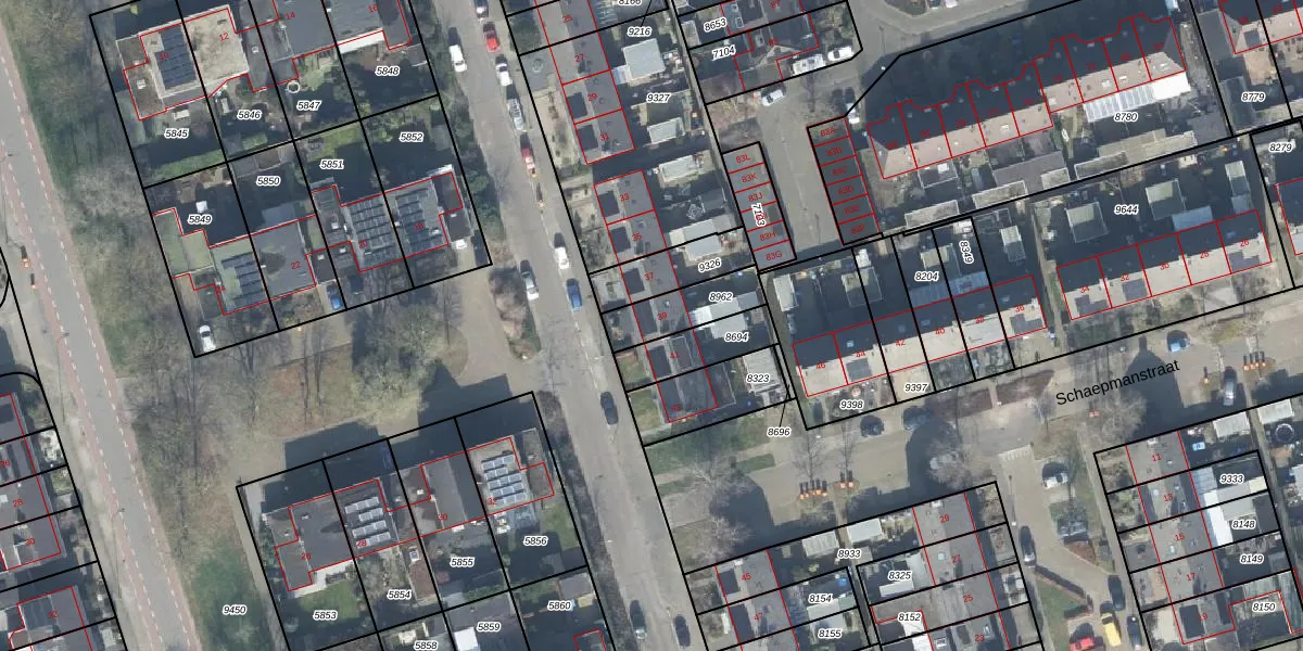 Gebruik de zoekbalk of klik op een perceel voor informatie over de adressen binnen dit perceel.