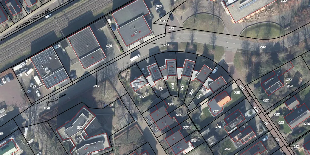 Veilingstraat 55 is gelegen op kadastraal perceel TLO00B7907. Deze kadastrale aanduiding is uniek en wordt gebruikt door het Kadaster om eigendomsrechten en andere zakelijke rechten vast te leggen. Het perceel maakt onderdeel uit van de kadastrale gemeente Twello.