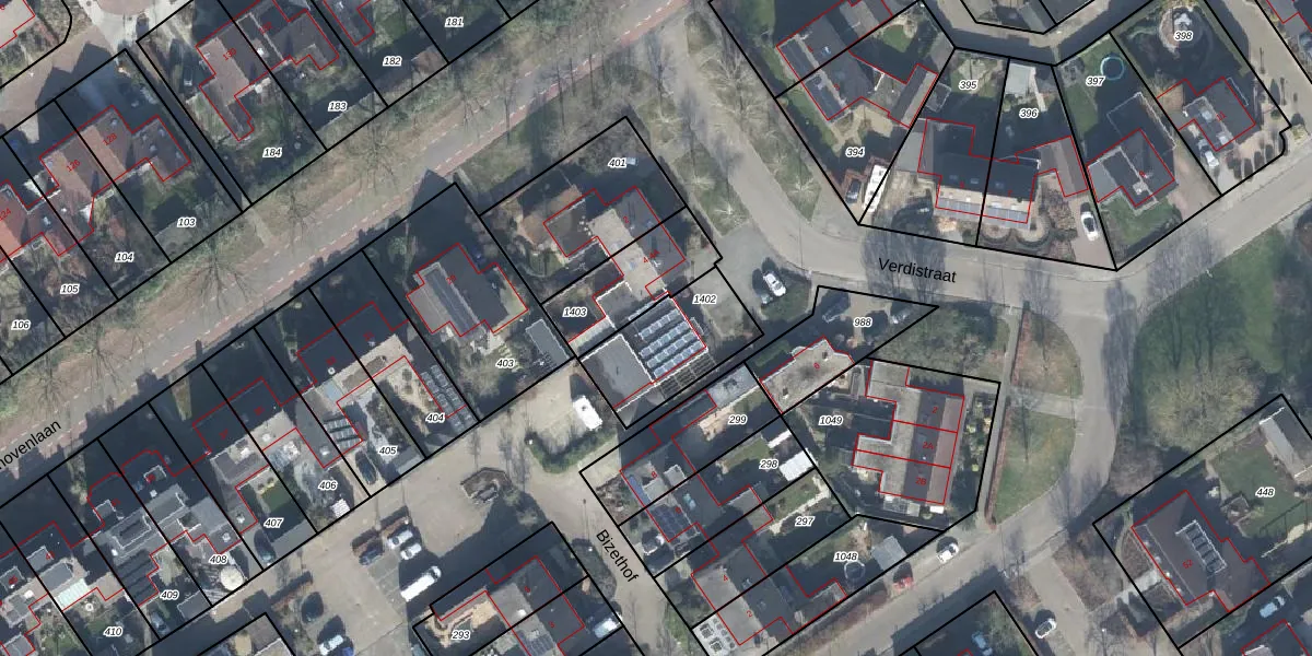 Het perceel waarop Verdistraat 4-A staat heeft een oppervlakte van 326 m². Dit is een groot perceel. De perceeloppervlakte wordt geregistreerd door het Kadaster. Gedetailleerde informatie over de maten van dit perceel kunt u vinden in het rapport Kadastrale kaart met maatvoering van Verdistraat 4-A.
