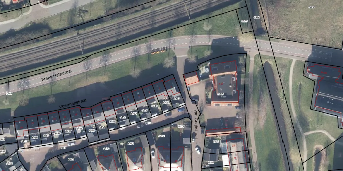 Voermanstraat 1 is gelegen op kadastraal perceel TLO00B8447. Deze kadastrale aanduiding is uniek en wordt gebruikt door het Kadaster om eigendomsrechten en andere zakelijke rechten vast te leggen. Het perceel maakt onderdeel uit van de kadastrale gemeente Twello.
