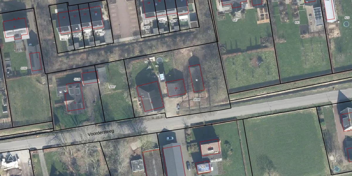 Voordersteeg 5-A is gelegen op kadastraal perceel TLO00B9098. Deze kadastrale aanduiding is uniek en wordt gebruikt door het Kadaster om eigendomsrechten en andere zakelijke rechten vast te leggen. Het perceel maakt onderdeel uit van de kadastrale gemeente Twello.
