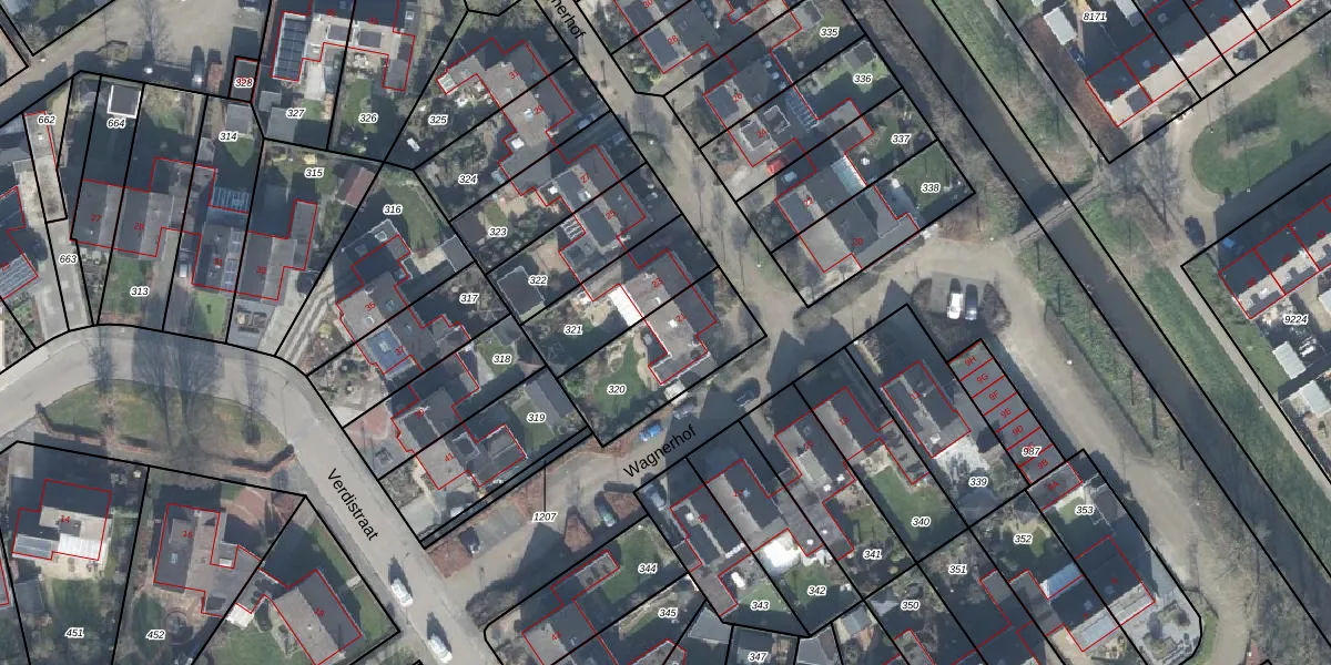 Het perceel waarop Wagnerhof 21 staat heeft een oppervlakte van 371 m². Dit is een groot perceel. De perceeloppervlakte wordt geregistreerd door het Kadaster. Gedetailleerde informatie over de maten van dit perceel kunt u vinden in het rapport Kadastrale kaart met maatvoering van Wagnerhof 21.