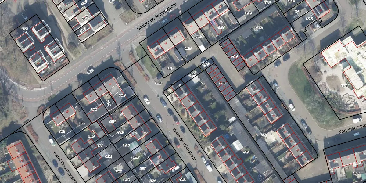 Het perceel waarop Witte de Withstraat 1 staat heeft een oppervlakte van 2605 m². Dit is een zeer groot perceel. De perceeloppervlakte wordt geregistreerd door het Kadaster. Gedetailleerde informatie over de maten van dit perceel kunt u vinden in het rapport Kadastrale kaart met maatvoering van Witte de Withstraat 1.