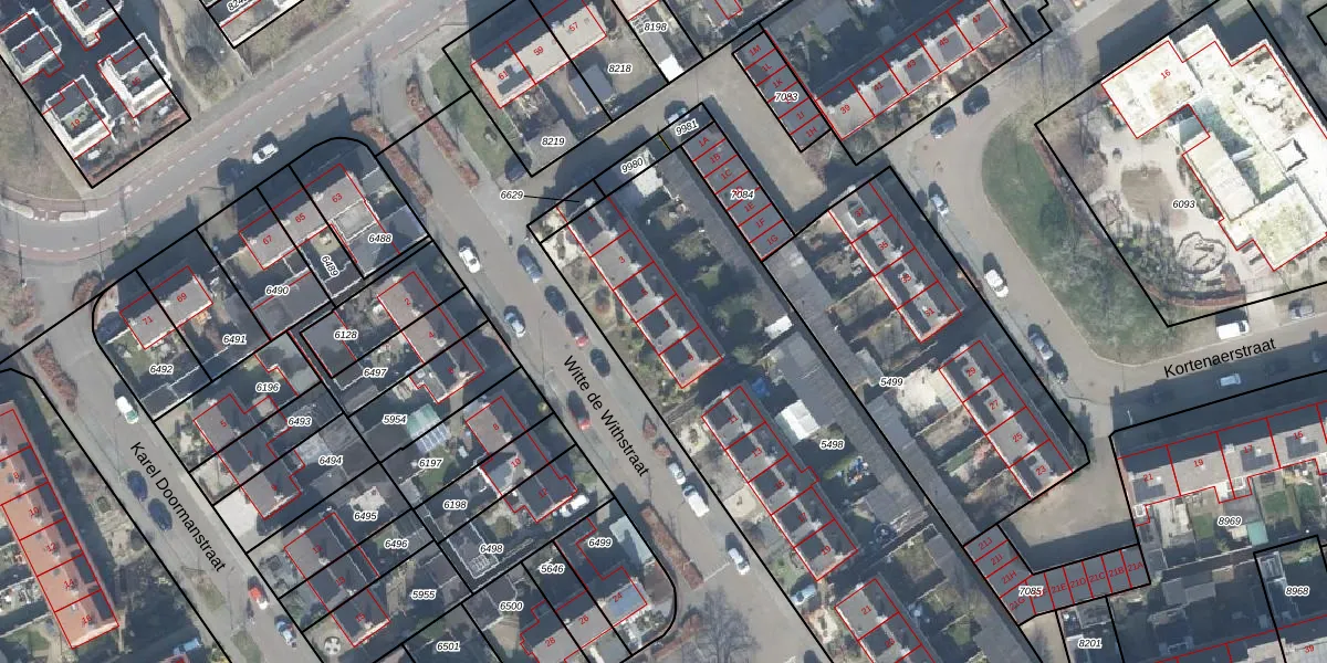 Het perceel waarop Witte de Withstraat 7 staat heeft een oppervlakte van 2605 m². Dit is een zeer groot perceel. De perceeloppervlakte wordt geregistreerd door het Kadaster. Gedetailleerde informatie over de maten van dit perceel kunt u vinden in het rapport Kadastrale kaart met maatvoering van Witte de Withstraat 7.