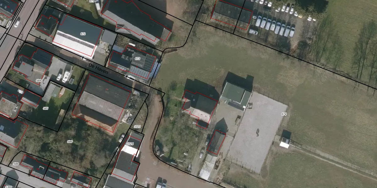 Het perceel waarop De Haven 7 staat heeft een oppervlakte van 9880 m². Dit is een zeer groot perceel. De perceeloppervlakte wordt geregistreerd door het Kadaster. Gedetailleerde informatie over de maten van dit perceel kunt u vinden in het rapport Kadastrale kaart met maatvoering van De Haven 7.