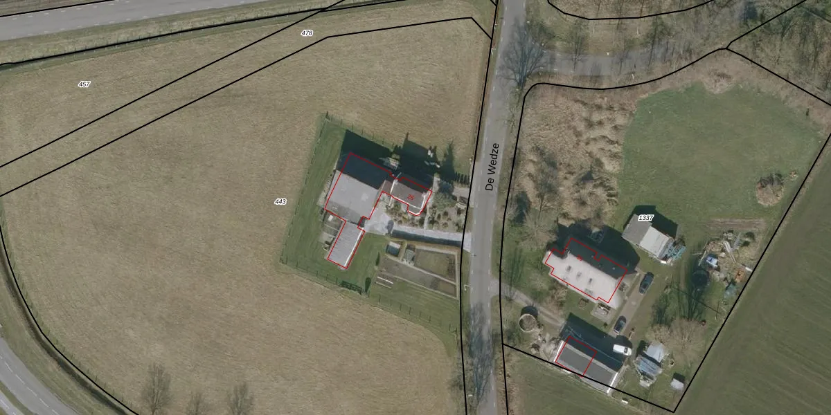 Het perceel waarop De Wedze 25 staat heeft een oppervlakte van 8830 m². Dit is een zeer groot perceel. De perceeloppervlakte wordt geregistreerd door het Kadaster. Gedetailleerde informatie over de maten van dit perceel kunt u vinden in het rapport Kadastrale kaart met maatvoering van De Wedze 25.