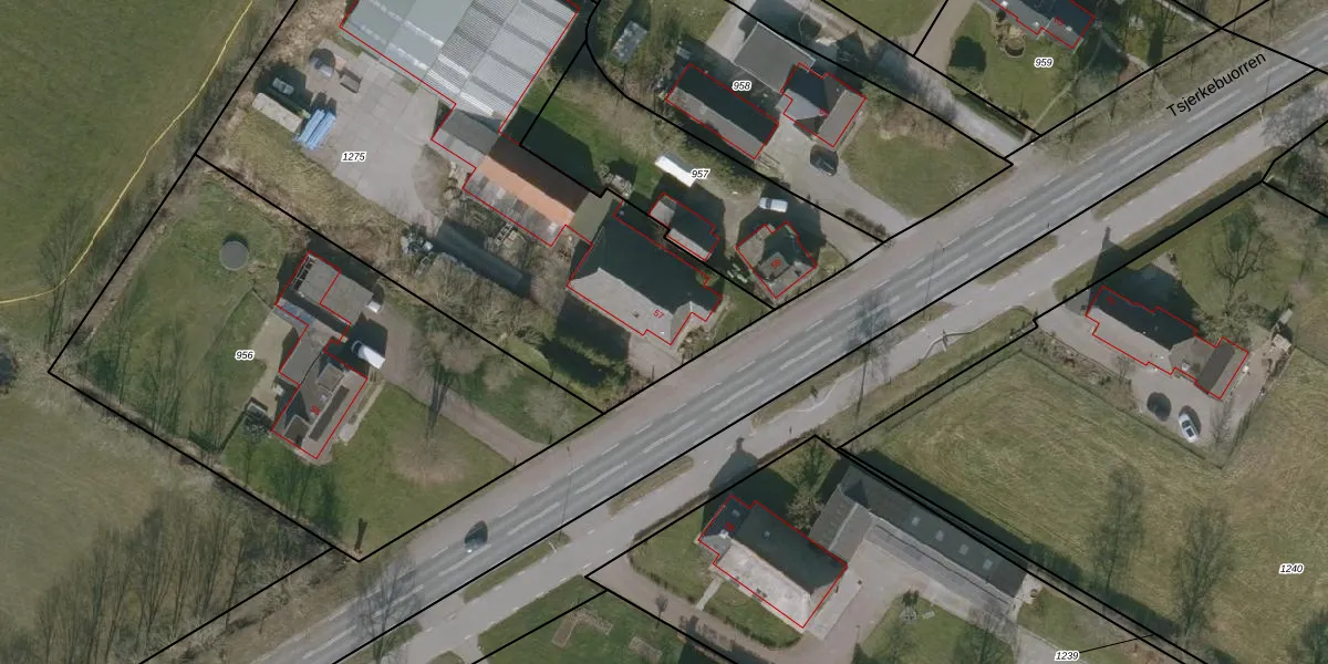 Het perceel waarop Tsjerkebuorren 57 staat heeft een oppervlakte van 3170 m². Dit is een zeer groot perceel. De perceeloppervlakte wordt geregistreerd door het Kadaster. Gedetailleerde informatie over de maten van dit perceel kunt u vinden in het rapport Kadastrale kaart met maatvoering van Tsjerkebuorren 57.