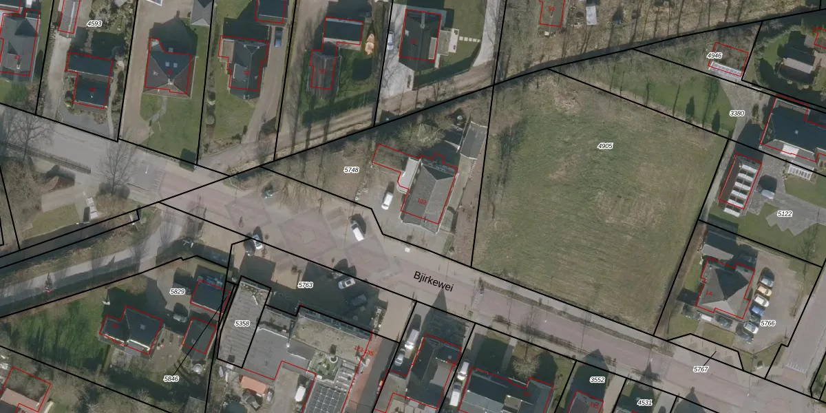 Het perceel waarop Bjirkewei 102 staat heeft een oppervlakte van 1130 m². Dit is een zeer groot perceel. De perceeloppervlakte wordt geregistreerd door het Kadaster. Gedetailleerde informatie over de maten van dit perceel kunt u vinden in het rapport Kadastrale kaart met maatvoering van Bjirkewei 102.