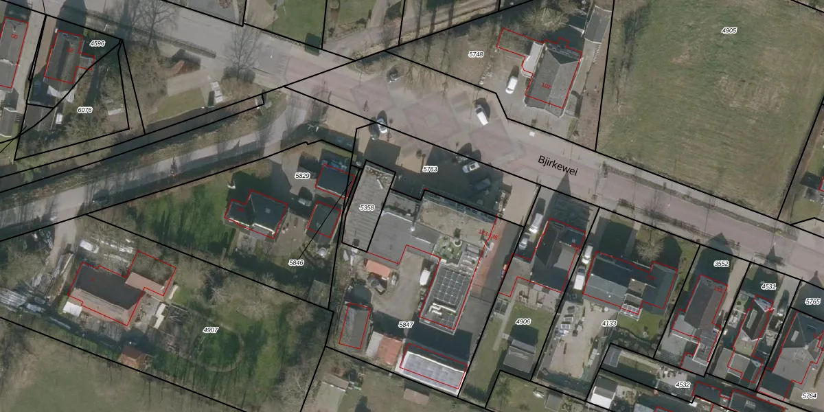 Het perceel waarop Bjirkewei 131 staat heeft een oppervlakte van 1573 m². Dit is een zeer groot perceel. De perceeloppervlakte wordt geregistreerd door het Kadaster. Gedetailleerde informatie over de maten van dit perceel kunt u vinden in het rapport Kadastrale kaart met maatvoering van Bjirkewei 131.