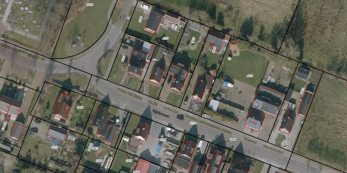 Het perceel waarop Bjirkewei 28 staat heeft een oppervlakte van 655 m². Dit is een groot perceel. De perceeloppervlakte wordt geregistreerd door het Kadaster. Gedetailleerde informatie over de maten van dit perceel kunt u vinden in het rapport Kadastrale kaart met maatvoering van Bjirkewei 28.