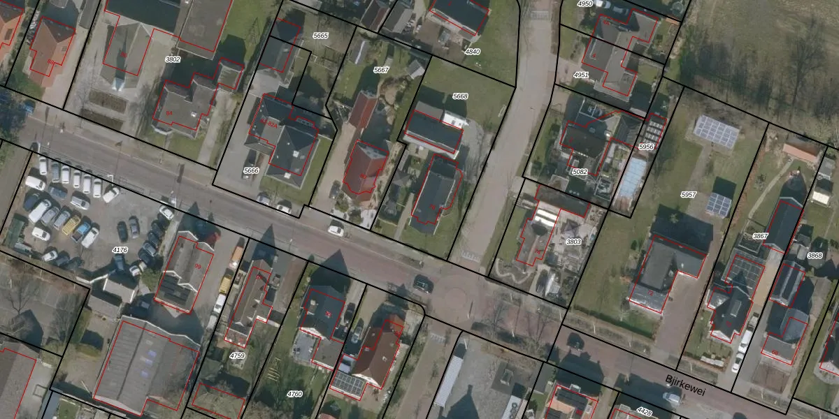 Het perceel waarop Bjirkewei 78 staat heeft een oppervlakte van 900 m². Dit is een groot perceel. De perceeloppervlakte wordt geregistreerd door het Kadaster. Gedetailleerde informatie over de maten van dit perceel kunt u vinden in het rapport Kadastrale kaart met maatvoering van Bjirkewei 78.