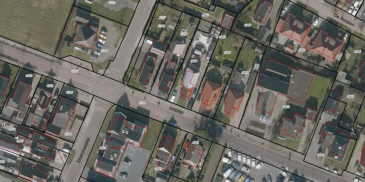 Gebruik de zoekbalk of klik op een perceel voor informatie over de adressen binnen dit perceel.