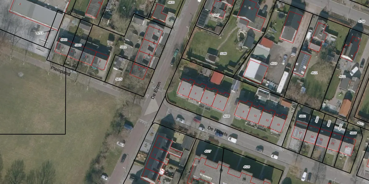Het perceel waarop De Popels 1 staat heeft een oppervlakte van 1695 m². Dit is een zeer groot perceel. De perceeloppervlakte wordt geregistreerd door het Kadaster. Gedetailleerde informatie over de maten van dit perceel kunt u vinden in het rapport Kadastrale kaart met maatvoering van De Popels 1.