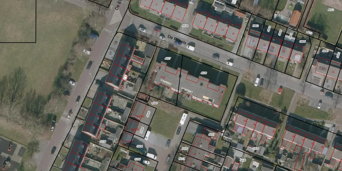 Het perceel waarop De Popels 16 staat heeft een oppervlakte van 540 m². Dit is een groot perceel. De perceeloppervlakte wordt geregistreerd door het Kadaster. Gedetailleerde informatie over de maten van dit perceel kunt u vinden in het rapport Kadastrale kaart met maatvoering van De Popels 16.
