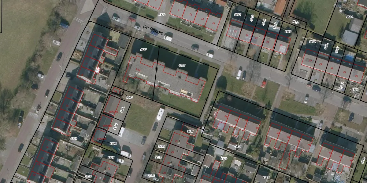 Het perceel waarop De Popels 22 staat heeft een oppervlakte van 890 m². Dit is een groot perceel. De perceeloppervlakte wordt geregistreerd door het Kadaster. Gedetailleerde informatie over de maten van dit perceel kunt u vinden in het rapport Kadastrale kaart met maatvoering van De Popels 22.
