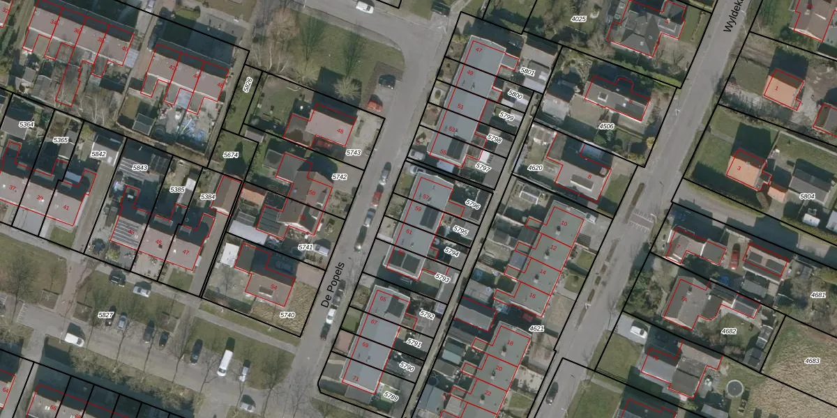 Het perceel waarop De Popels 59 staat heeft een oppervlakte van 126 m². Dit is een middelgroot perceel. De perceeloppervlakte wordt geregistreerd door het Kadaster. Gedetailleerde informatie over de maten van dit perceel kunt u vinden in het rapport Kadastrale kaart met maatvoering van De Popels 59.
