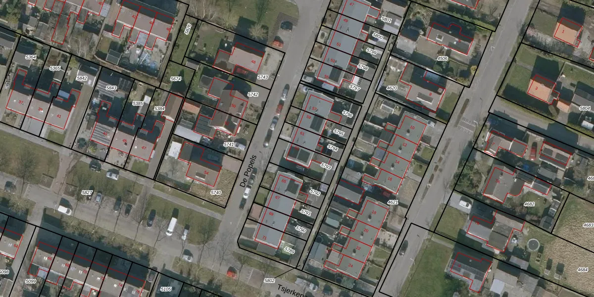 Het perceel waarop De Popels 63 staat heeft een oppervlakte van 188 m². Dit is een middelgroot perceel. De perceeloppervlakte wordt geregistreerd door het Kadaster. Gedetailleerde informatie over de maten van dit perceel kunt u vinden in het rapport Kadastrale kaart met maatvoering van De Popels 63.