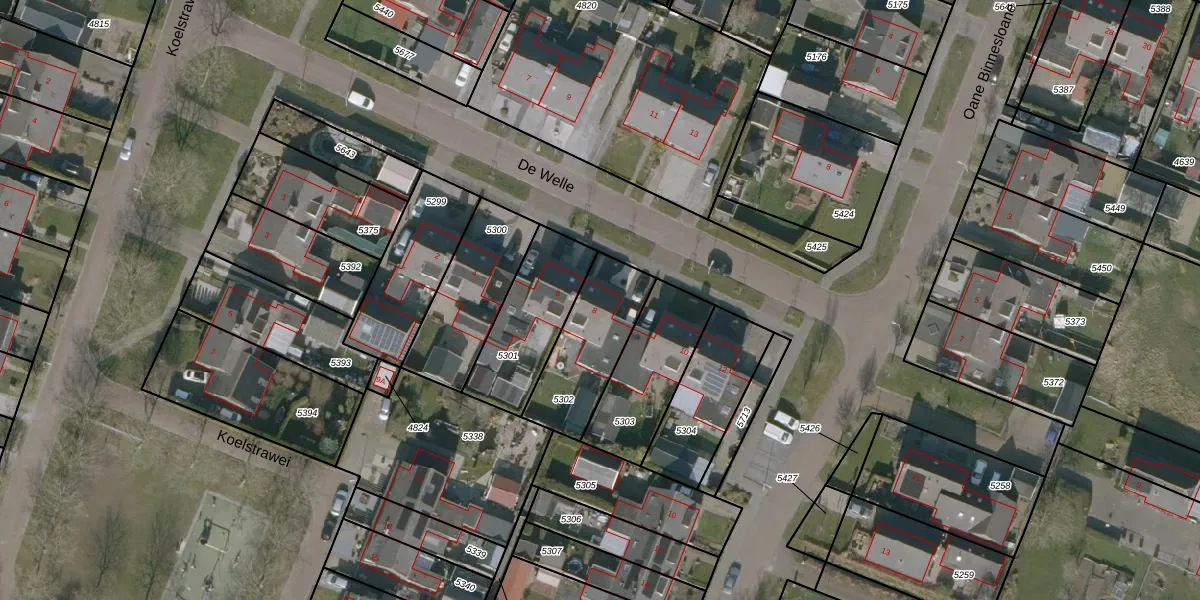 Het perceel waarop De Welle 8 staat heeft een oppervlakte van 323 m². Dit is een groot perceel. De perceeloppervlakte wordt geregistreerd door het Kadaster. Gedetailleerde informatie over de maten van dit perceel kunt u vinden in het rapport Kadastrale kaart met maatvoering van De Welle 8.