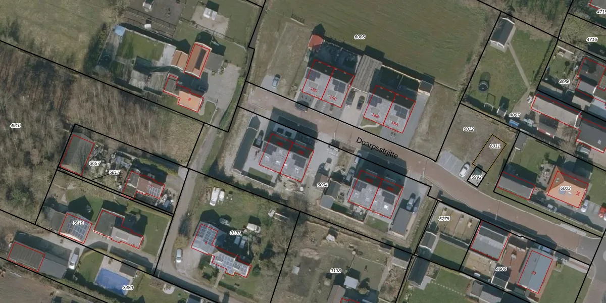 Het perceel waarop Doarpsstrjitte 18-F staat heeft een oppervlakte van 1860 m². Dit is een zeer groot perceel. De perceeloppervlakte wordt geregistreerd door het Kadaster. Gedetailleerde informatie over de maten van dit perceel kunt u vinden in het rapport Kadastrale kaart met maatvoering van Doarpsstrjitte 18-F.