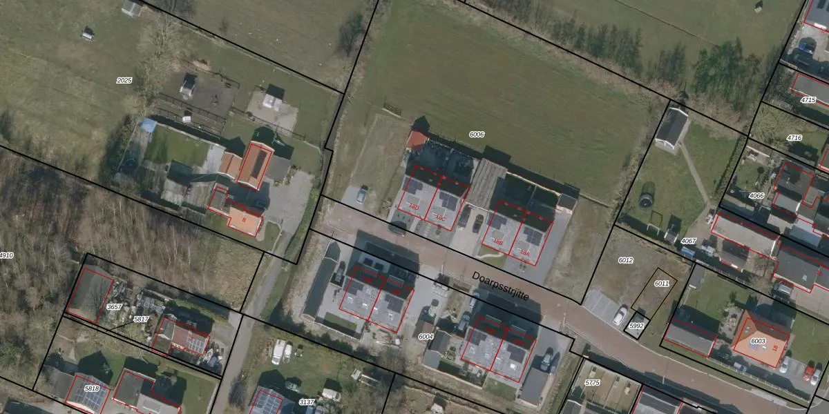 Het perceel waarop Doarpsstrjitte 18-D staat heeft een oppervlakte van 3997 m². Dit is een zeer groot perceel. De perceeloppervlakte wordt geregistreerd door het Kadaster. Gedetailleerde informatie over de maten van dit perceel kunt u vinden in het rapport Kadastrale kaart met maatvoering van Doarpsstrjitte 18-D.