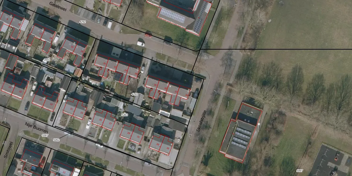 Het perceel waarop Gealewei 32 staat heeft een oppervlakte van 1760 m². Dit is een zeer groot perceel. De perceeloppervlakte wordt geregistreerd door het Kadaster. Gedetailleerde informatie over de maten van dit perceel kunt u vinden in het rapport Kadastrale kaart met maatvoering van Gealewei 32.
