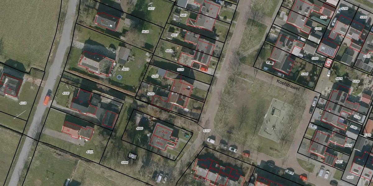Koelstrawei 14 is gelegen op kadastraal perceel KTN00D5255. Deze kadastrale aanduiding is uniek en wordt gebruikt door het Kadaster om eigendomsrechten en andere zakelijke rechten vast te leggen. Het perceel maakt onderdeel uit van de kadastrale gemeente Kooten.