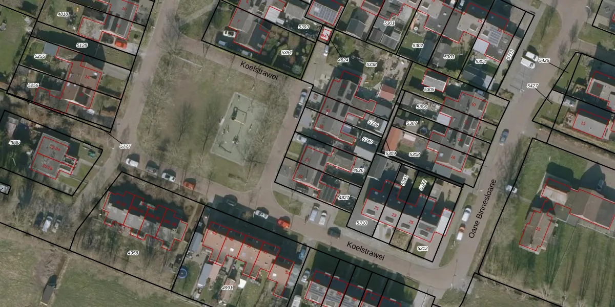 Het perceel waarop Koelstrawei 17 staat heeft een oppervlakte van 242 m². Dit is een middelgroot perceel. De perceeloppervlakte wordt geregistreerd door het Kadaster. Gedetailleerde informatie over de maten van dit perceel kunt u vinden in het rapport Kadastrale kaart met maatvoering van Koelstrawei 17.